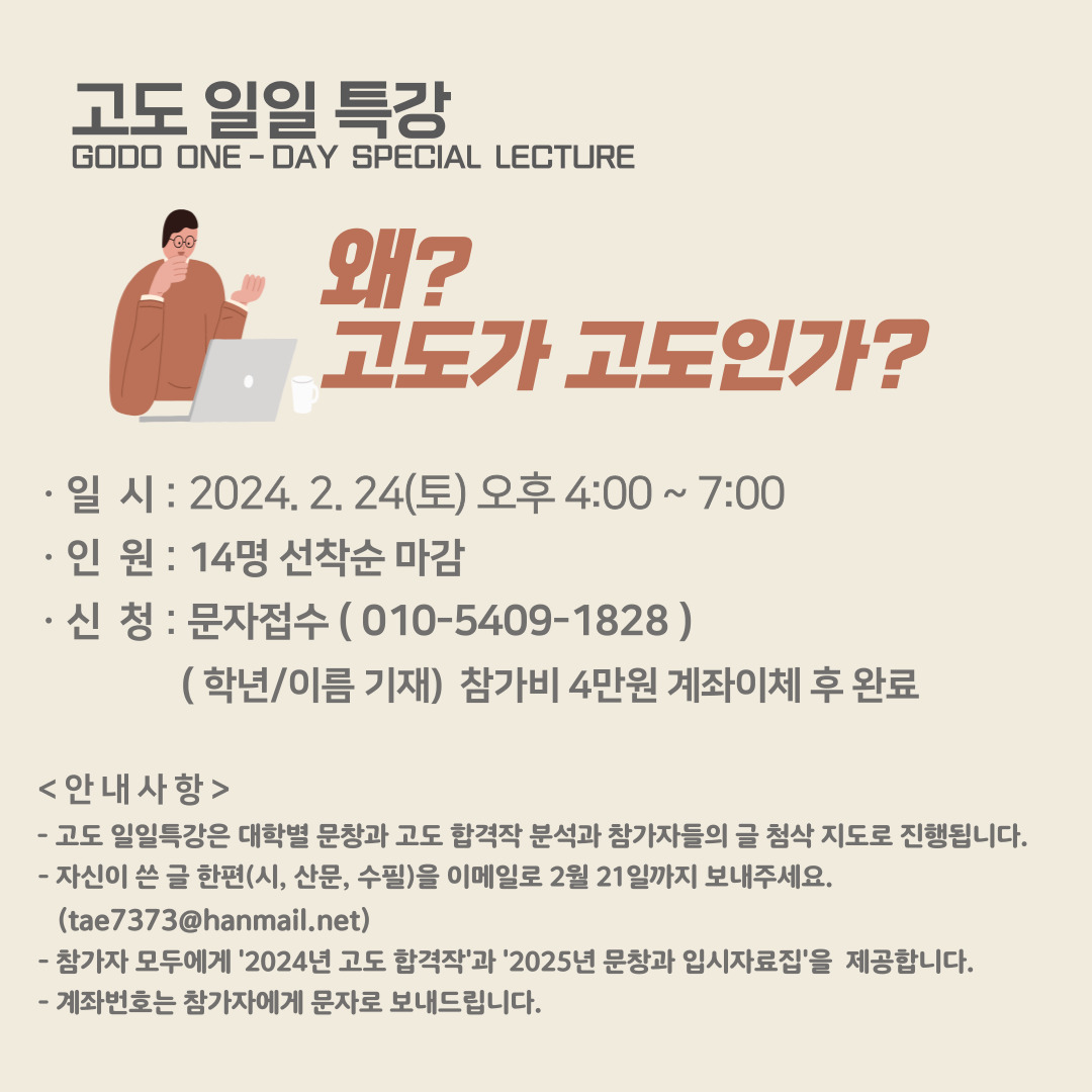 ★ 고도 일일 특강 ★ 2/24 토요일 4시