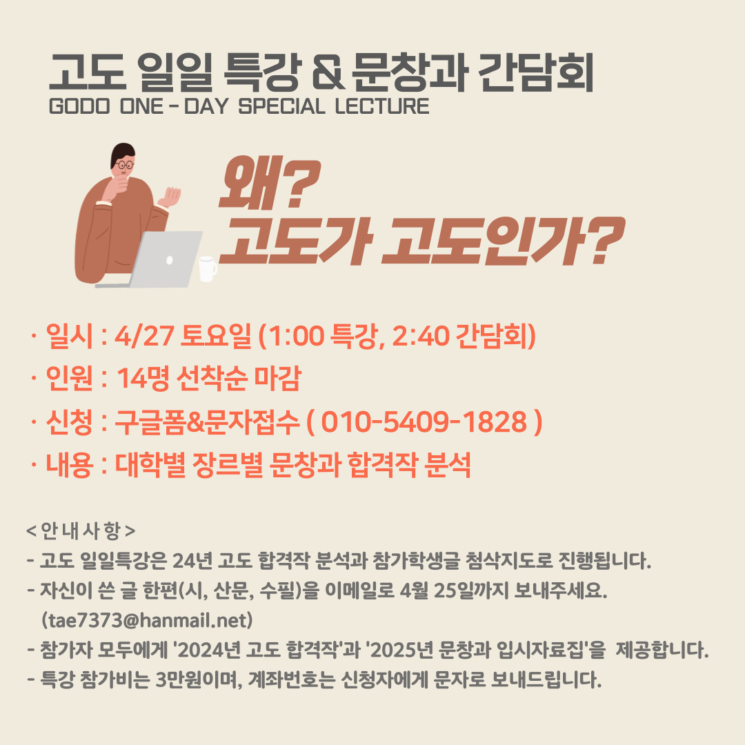 ★ 고도 일일 특강 ★ 4/27 토요일 1시