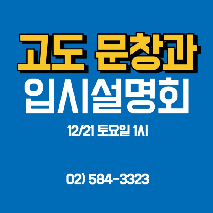 고도 문창과 입시설명회 안내 < 12/21 토 1시 >