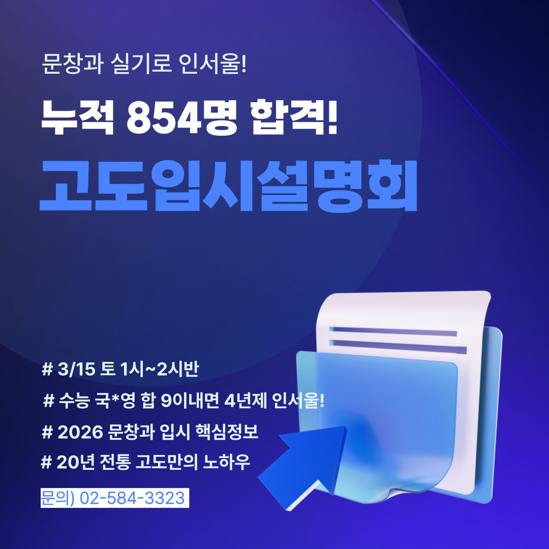 20년 전통, 고도 문창과 입시설명회 안내 < 3/15 토1시 >