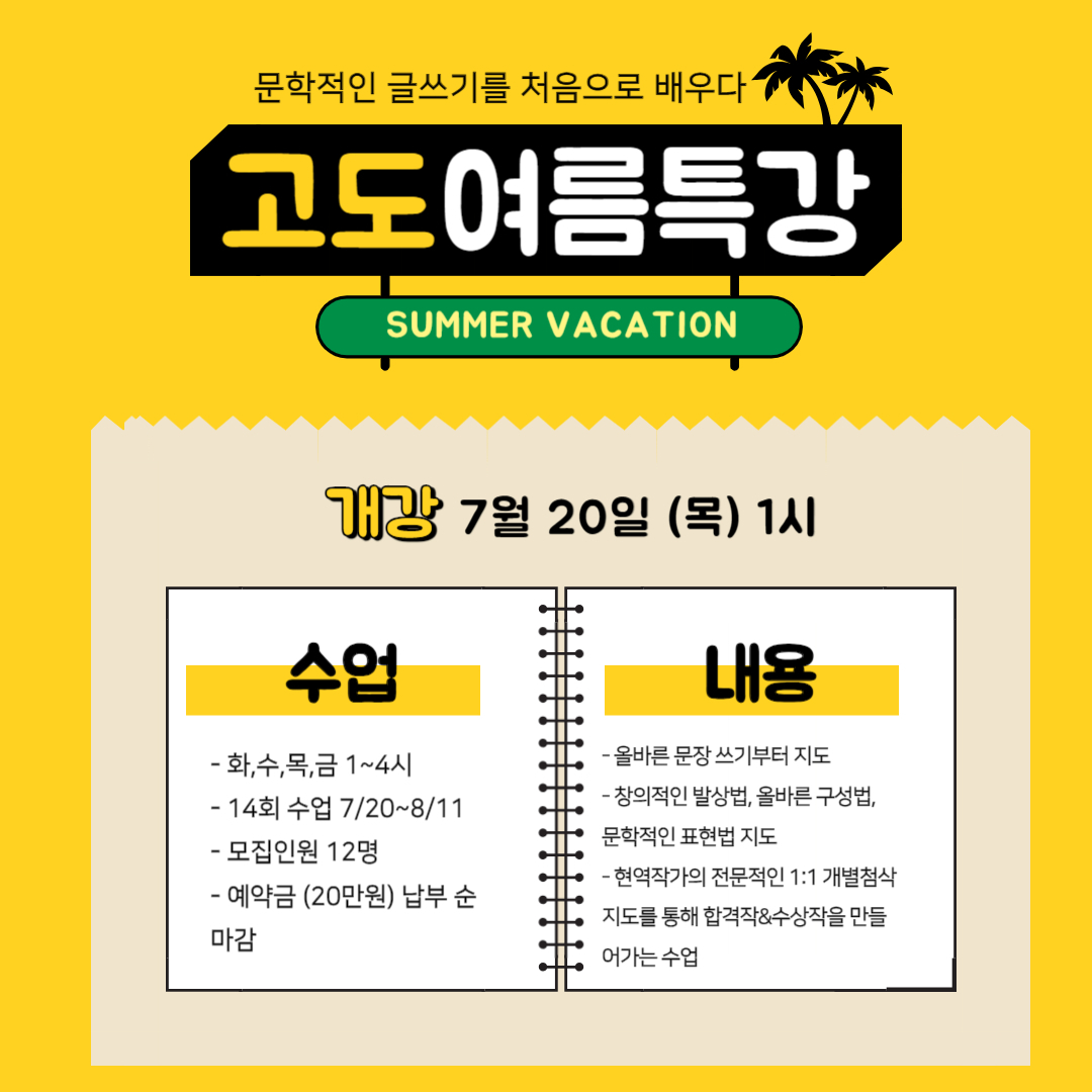 ● 대상 : 문창과 입시생, 문학특기자 준비생, 지방 학생
