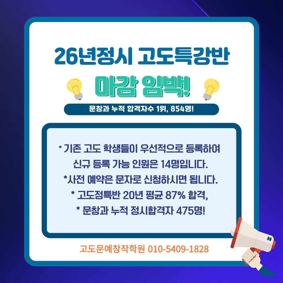 – 문창과 전문 입시 학원은 고도뿐이다. 영화과 방연과 문창과 다 하는 학원은 있지만