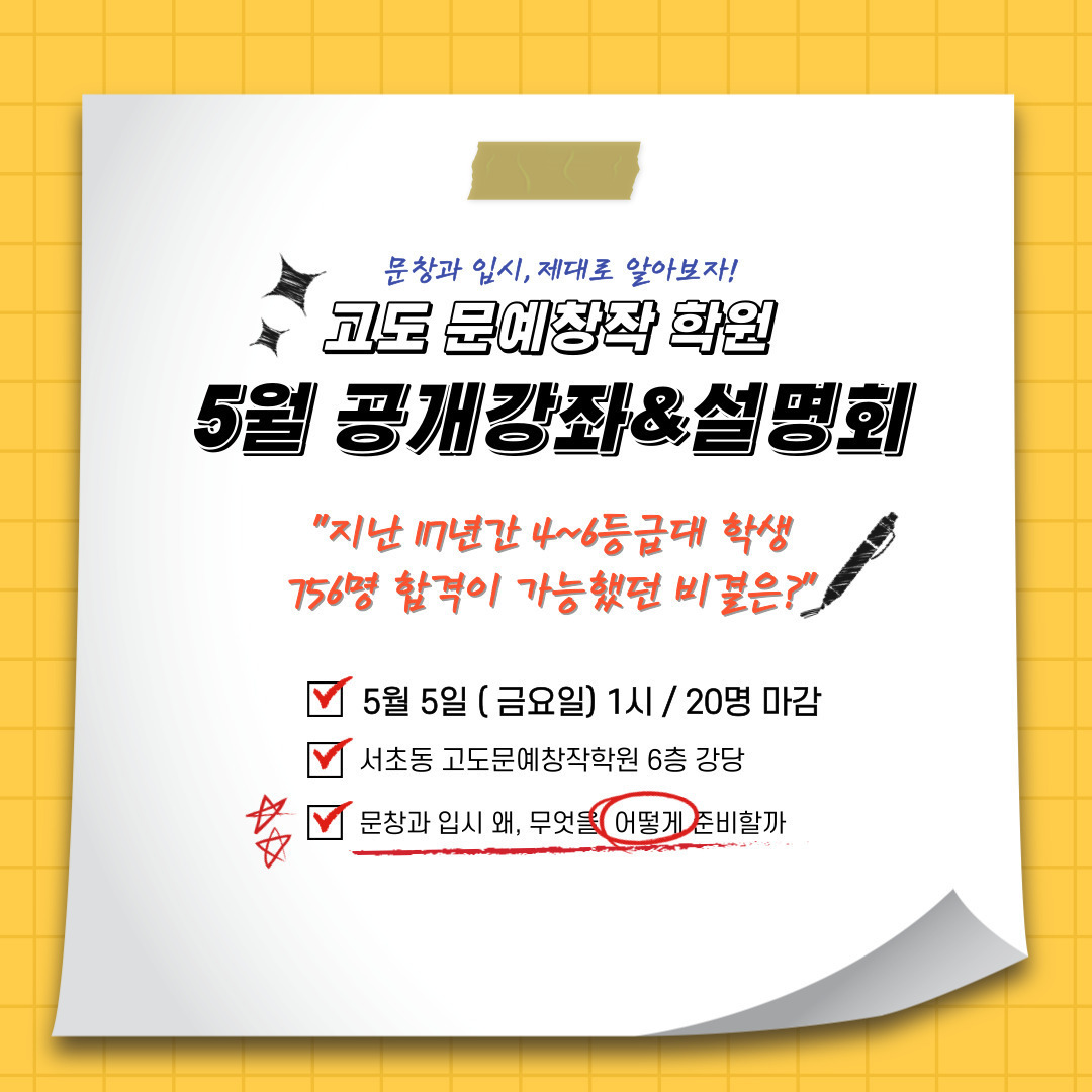 << 고도 문창과 공개강좌&설명회 5월5일(금) >>